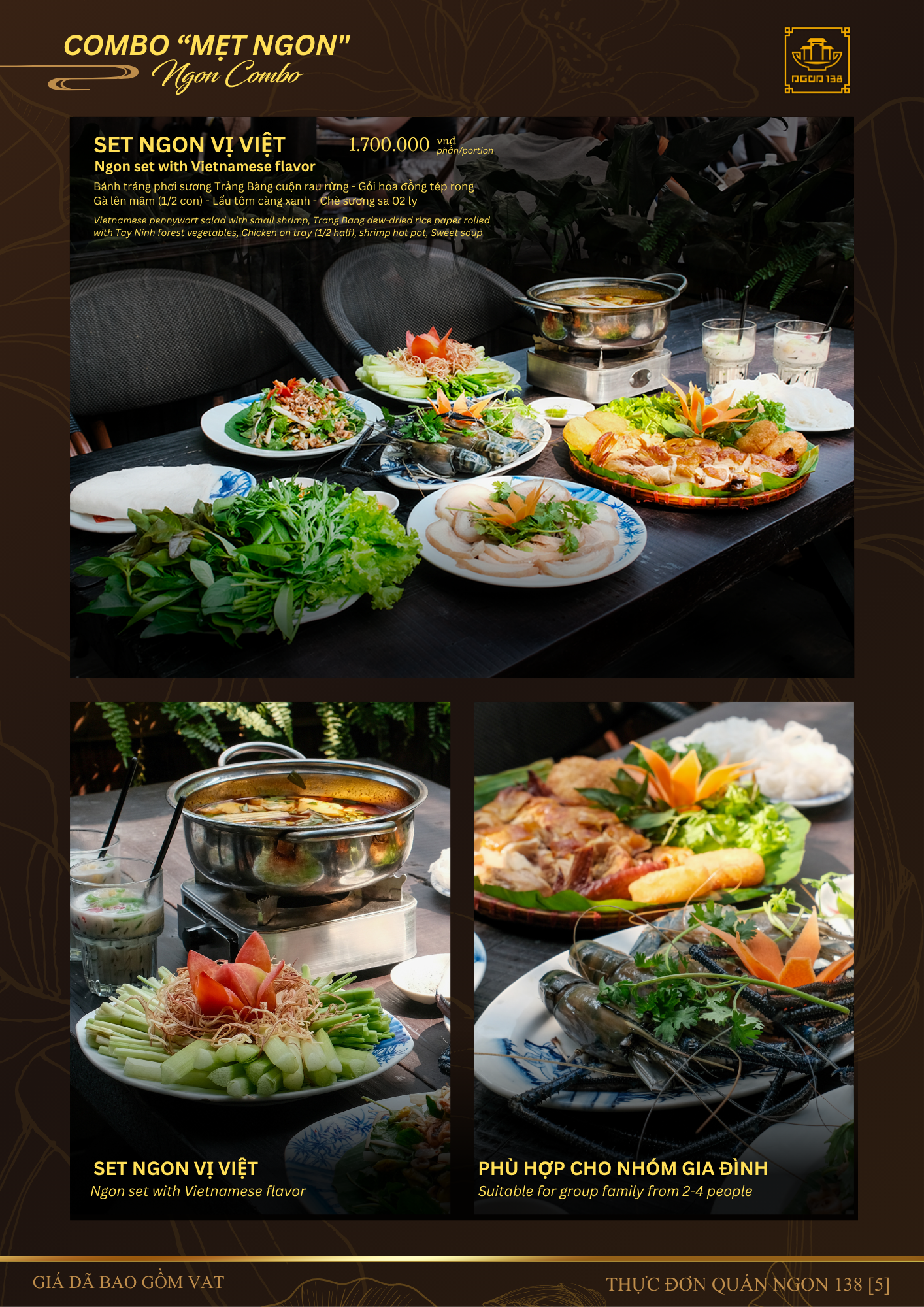 Ngon mong muốn mang đến một trải nghiệm ẩm thực truyền thống vừa gần gũi, bình dị, nhưng cũng không kém phần tinh tế, dành cho những thực khách mong muốn khám phá bản sắc văn hóa Việt qua từng món ăn. Ẩn sau mỗi bữa ăn là một câu chuyện. Chúng tôi không chỉ phục vụ món ngon, mà còn kể chuyện Việt – bằng hương vị, bằng không gian, và bằng sự tận tâm trong từng trải nghiệm. Từ cách chọn nguyên liệu, chế biến, trình bày cho đến từng chi tiết nhỏ như chiếc đèn lồng, lời chào thân thiện – tất cả tạo nên một bản giao hưởng cảm xúc đầy chất thơ.